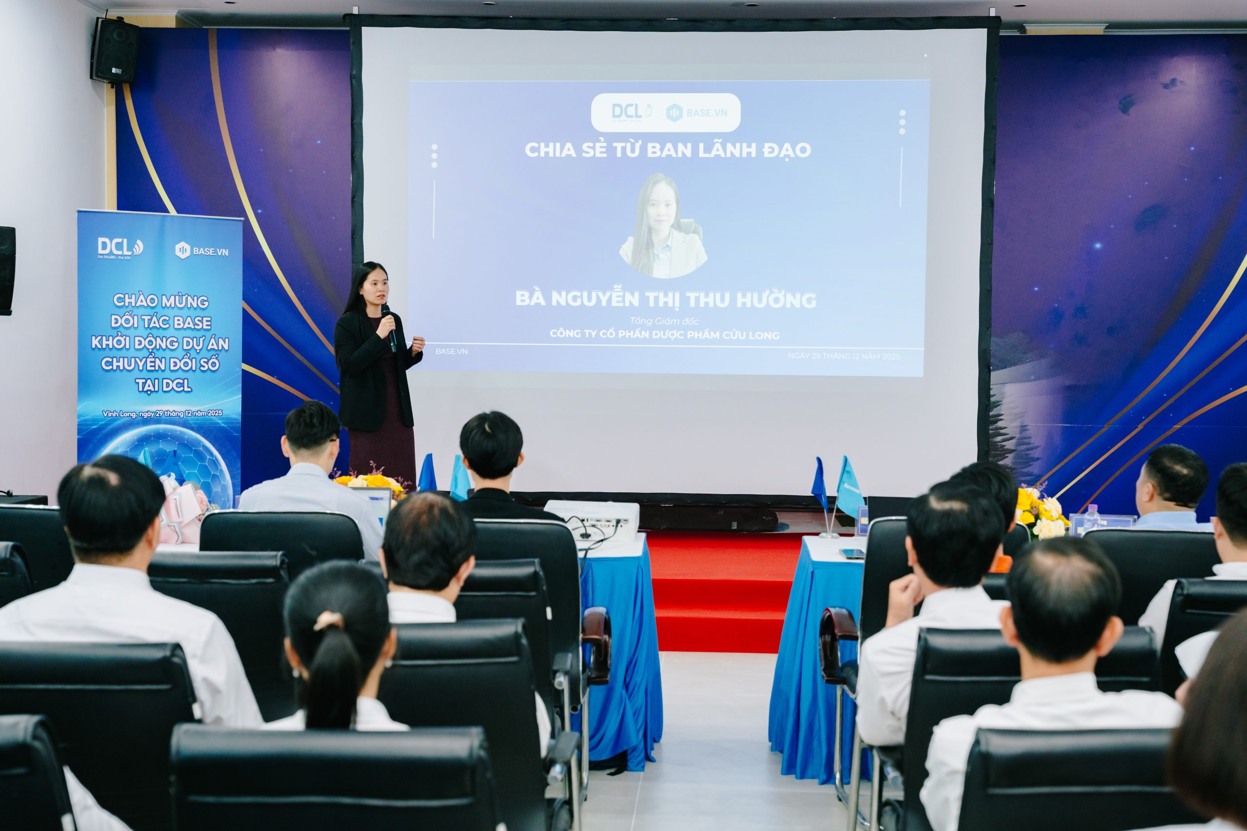 Phát biểu tại buổi lễ, bà Nguyễn Thị Thu Hường – Tổng Giám đốc DCL cho biết, trong những năm qua, DCL đã từng bước chuẩn hóa công tác quản trị, vận hành và kiểm soát nội bộ. Việc triển khai nền tảng Base.vn là một bước tiếp theo trong lộ trình hoàn thiện hệ thống quản trị, nhằm tăng tính đồng bộ, minh bạch và hiệu quả trong phối hợp công việc giữa các bộ phận, đồng thời hỗ trợ Ban Lãnh đạo trong công tác điều hành.